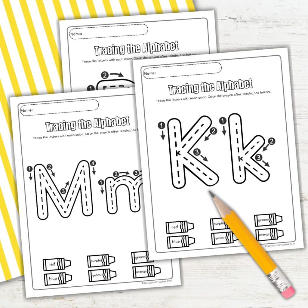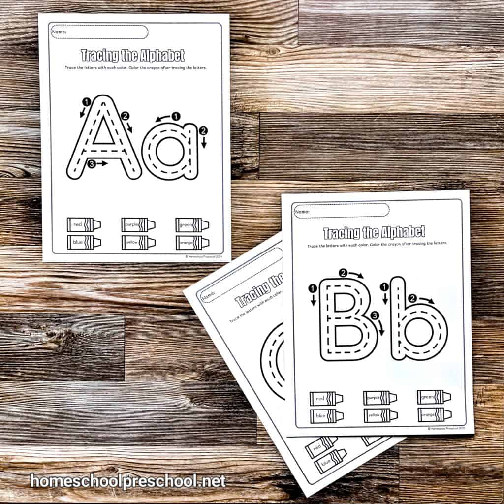 These worksheets are perfect for preschool and kindergarten students, and they pair well with other alphabet worksheets for extra practice. You can find them all in our free printable alphabet worksheets, ready to download and use today!