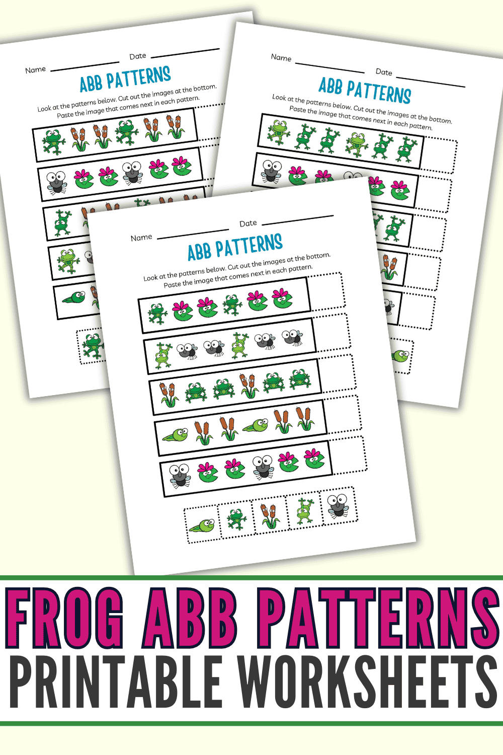 Frog ABB Pattern Worksheets