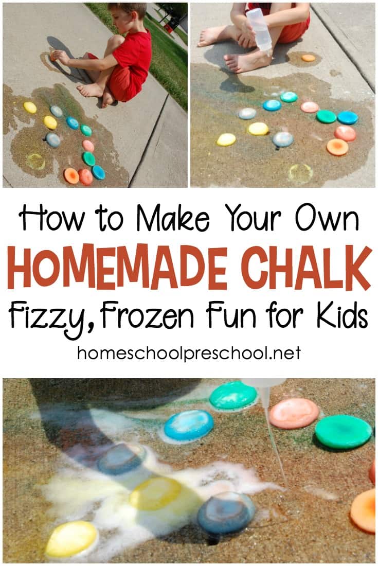 Follow this simple recipe for homemade frozen sidewalk chalk for kids. You’ve likely got the ingredients in your pantry, and your kids will have a blast!