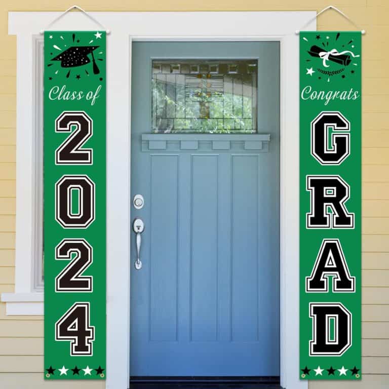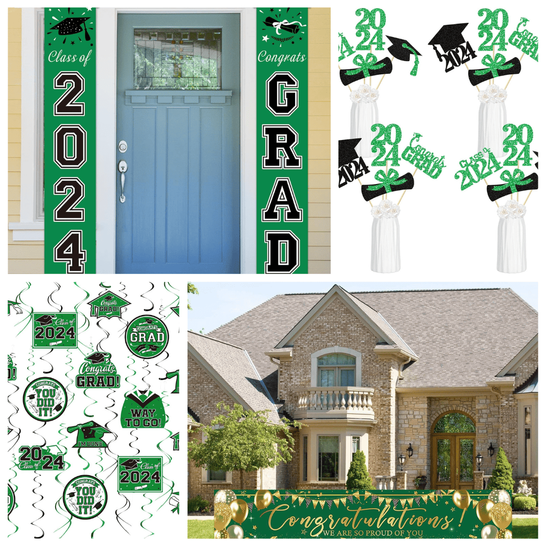 Celebrate the Class of 2024 with thisversatile green-themed graduation decorations! Made of sturdy polyester fabric, weather-resistant and reusable, these banners feature “Class of 2024” and “Congrats Grad” for any school or grade.