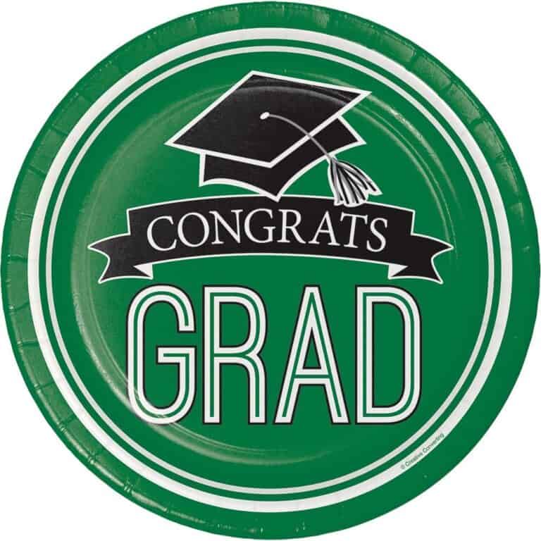 Celebrate in style with this Congrats Grad Green Plates! Featuring a sleek design and the message “Congrats Grad,” these plates add a festive touch to your party or graduation decorations.