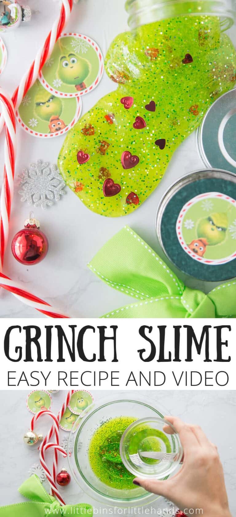 Kids will have a blast stretching and manipulating some How the Grinch Stole Christmas Slime as they watch the Grinch movie or listen to you read the story.