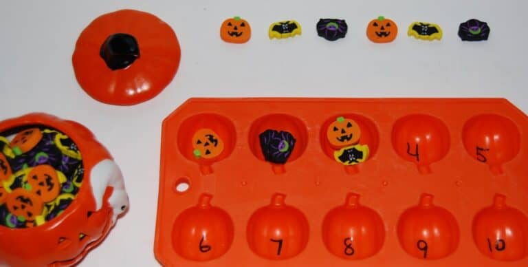 These hands-on Halloween preschool math activities are a great way to have kids ages 3-6 work on counting and sorting this October!