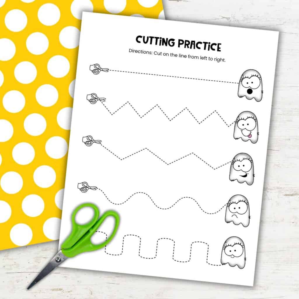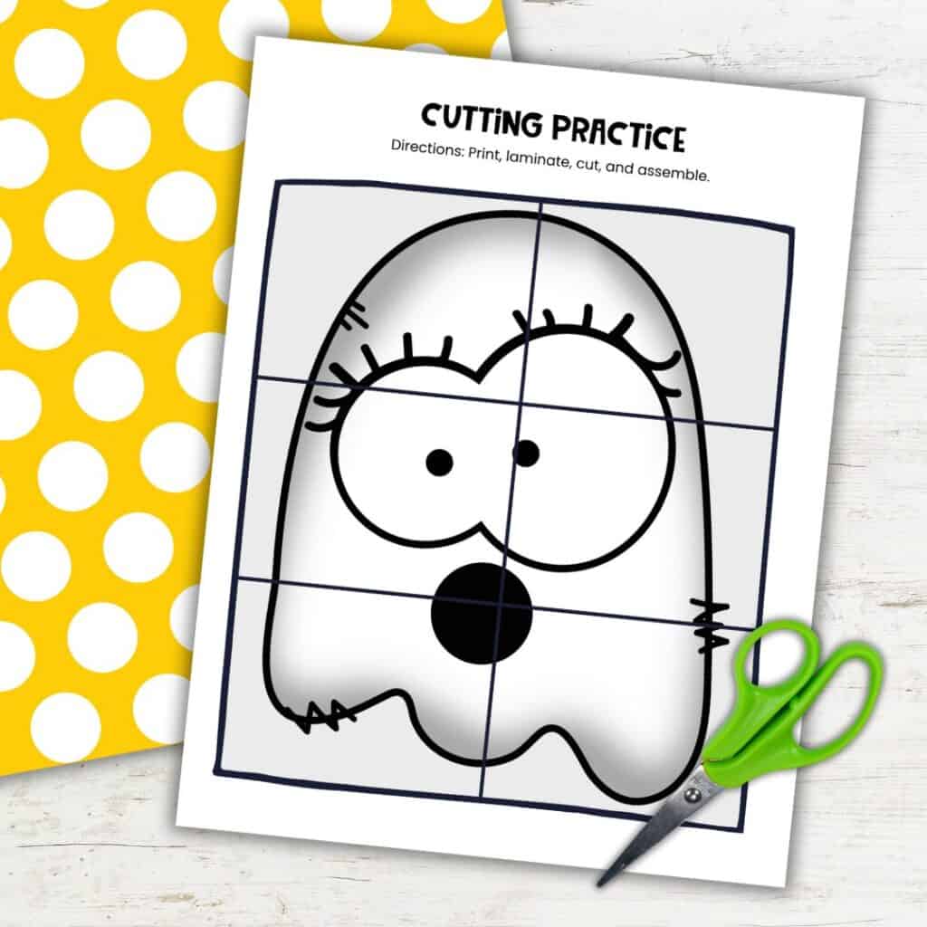 Included Activities: Straight, zigzag, curved, and vertical cutting lines + ghost puzzle page