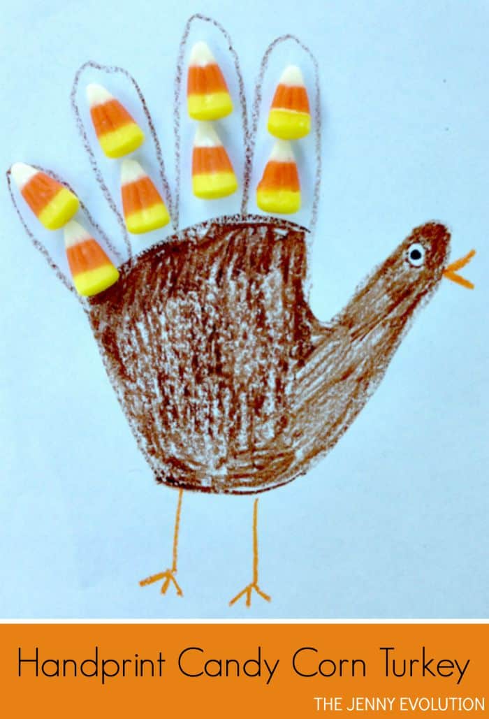 Brighten up your Thanksgiving crafting with this adorable and colorful handprint turkey idea!