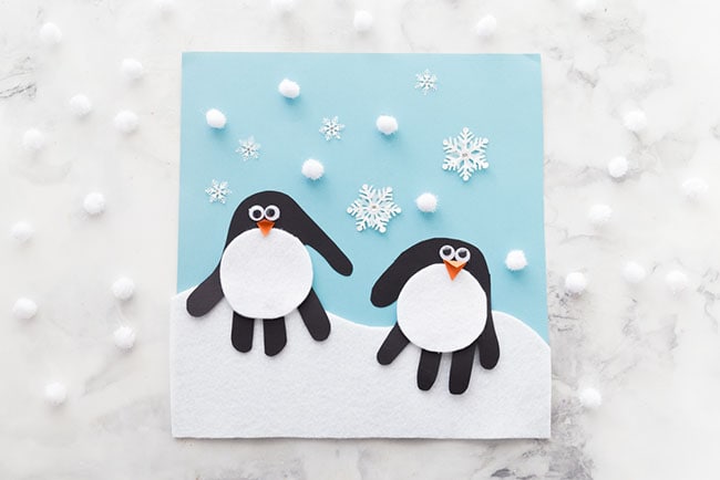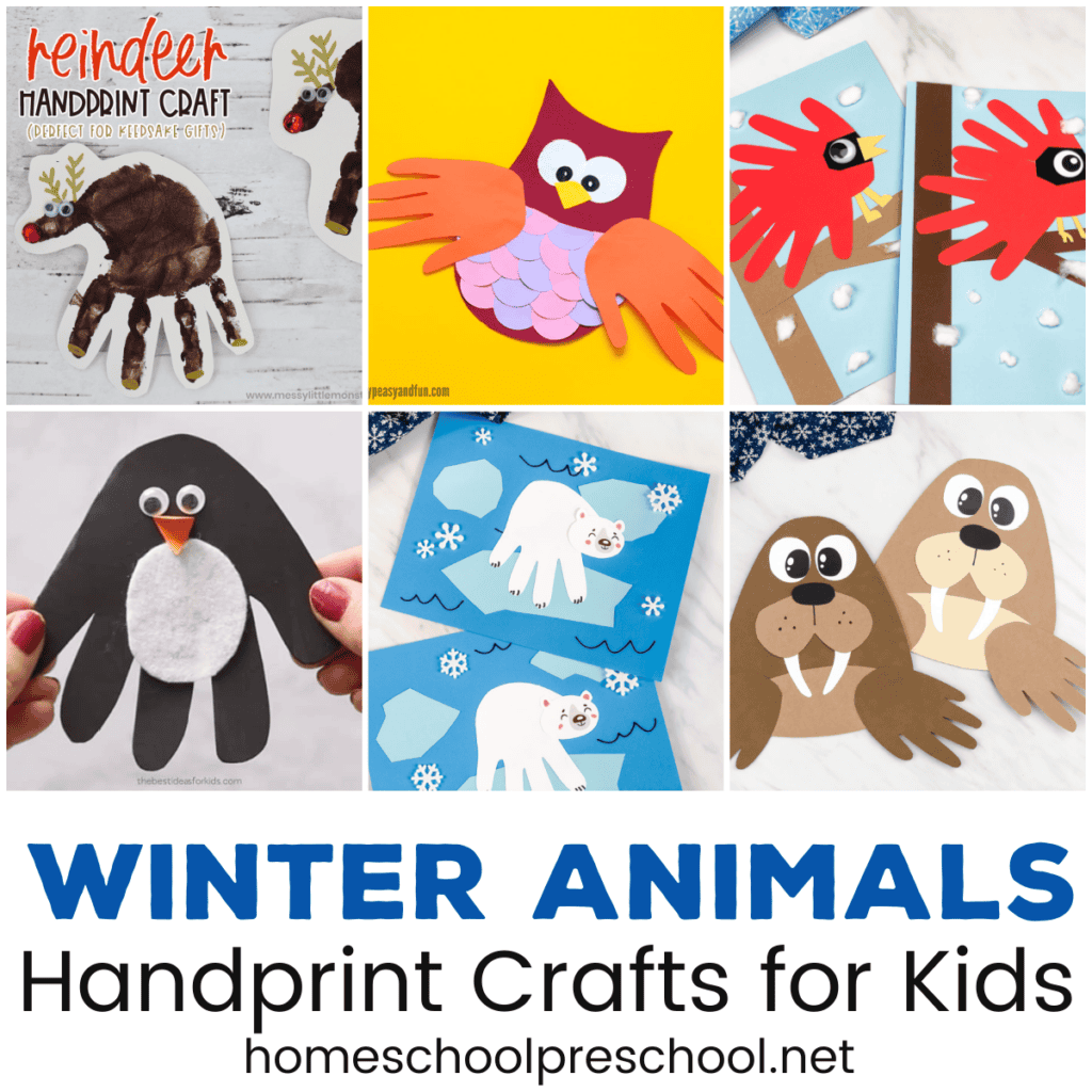 Through handprint preschool crafts, kids can explore the different shapes and forms of winter animals while having fun with colors and textures.