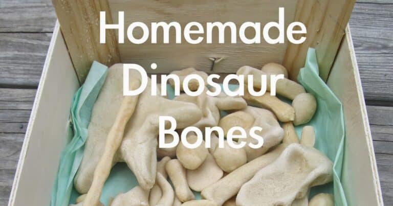 I love this idea! Kids will love shaping homemade salt dough into claws, bones, teeth, and more. Then, they can use the homemade dinosaur bones to recreate their very own dinosaur. Kitchen Floor Crafts