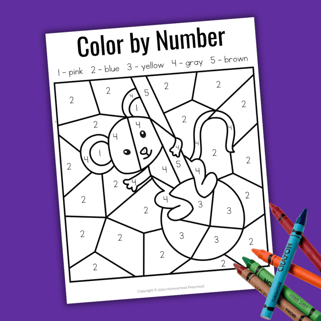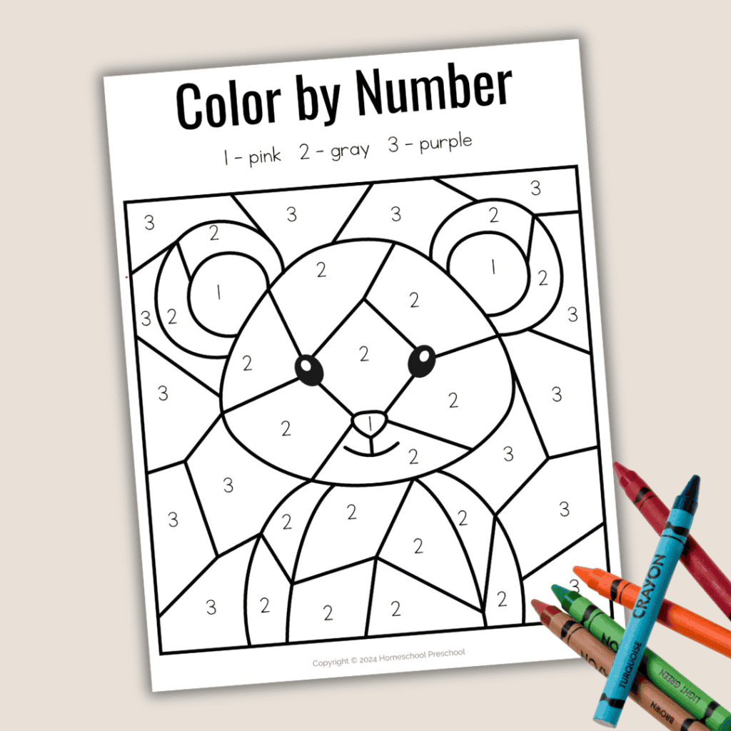 These color by number worksheets offer preschoolers a fun way to explore colors and numbers. Plus, as they work through the pages, preschoolers will strengthen math and reading skills.