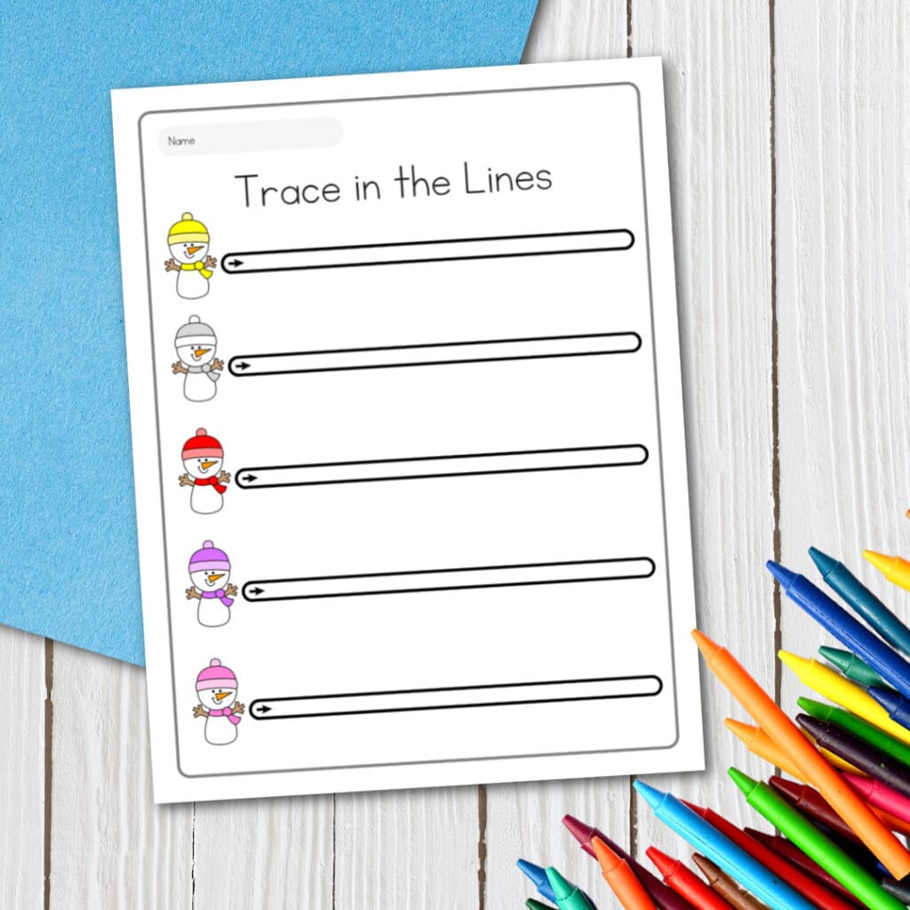 What could be more fun than strengthening motor skills with our winter-themed horizontal lines tracing worksheets?