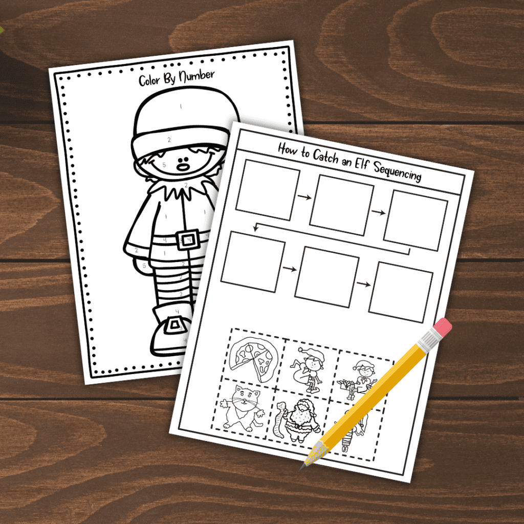 There are two writing prompts included in this pack. One encourages kids to draw and describe their favorite part of the story. The other encourages kids to draw and describe their own elf traps.