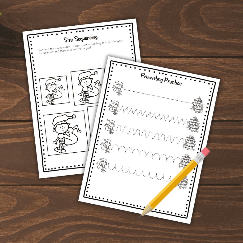 Visual discrimination skills get a workout with size sequencing cards. Kids can order the elves from smallest to largest and then from largest to smallest.