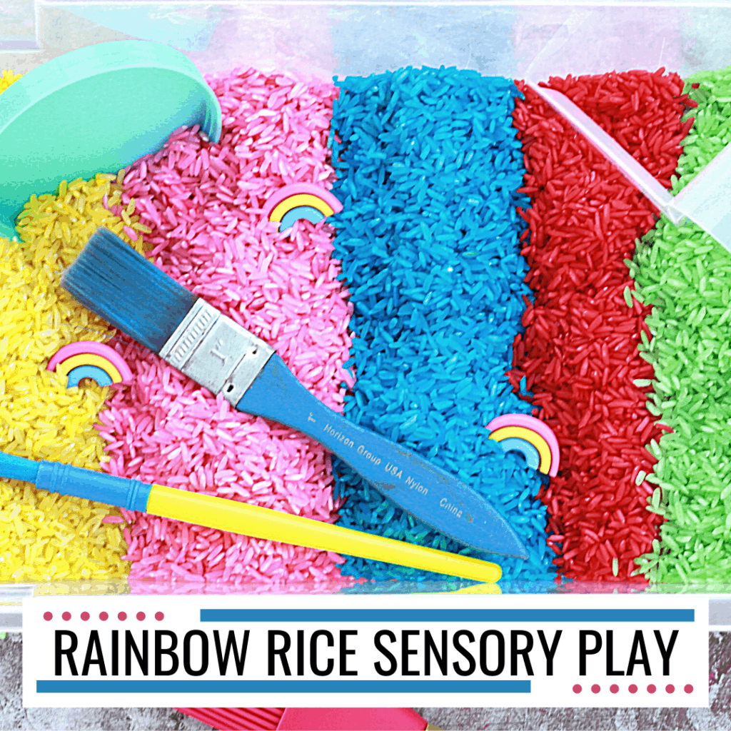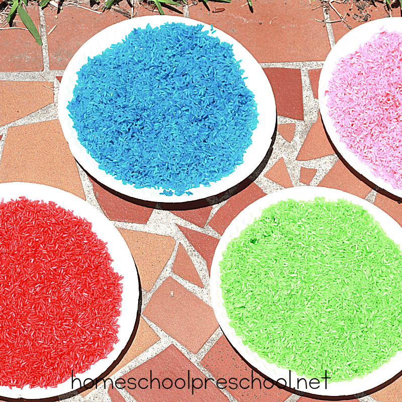 This colorful rainbow rice is the perfect sensory bin filler for many themes. Add it to your spring and summer sensory bins, and your kids will love pouring, scooping, and playing with this rice.