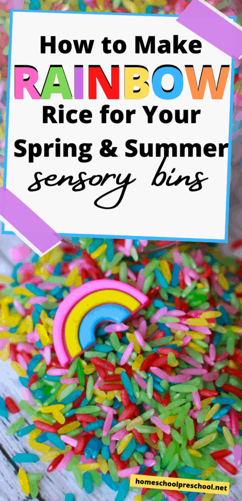 Find out how to make rainbow rice for engaging sensory play. This is the sensory tub filler every preschool mom and teacher needs on hand!