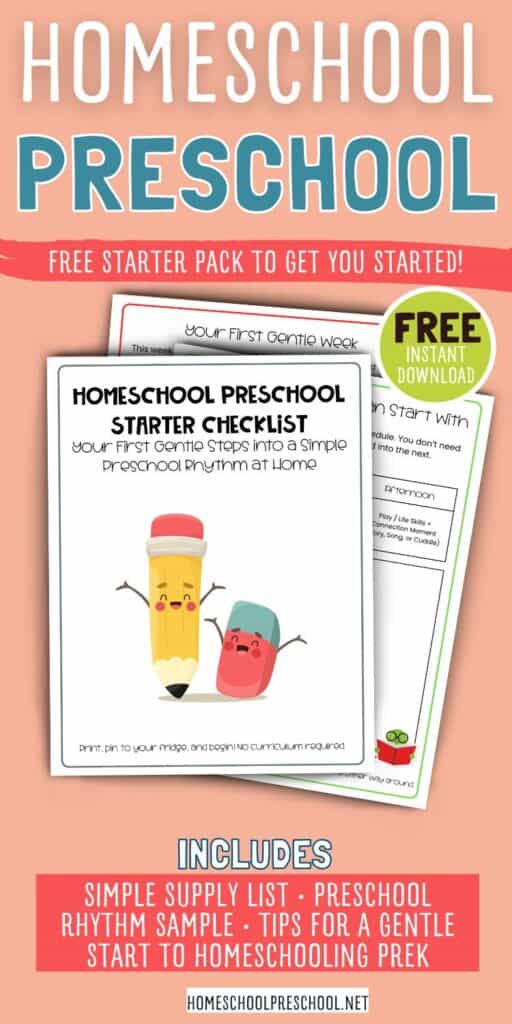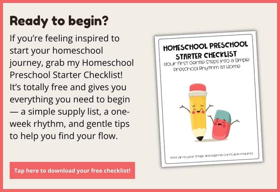 If you want something tangible to anchor your rhythm, I made a free Homeschool Preschool Starter Checklist with a one-week layout and a simple supply list — just print and begin. No curriculum required, no extra prep.