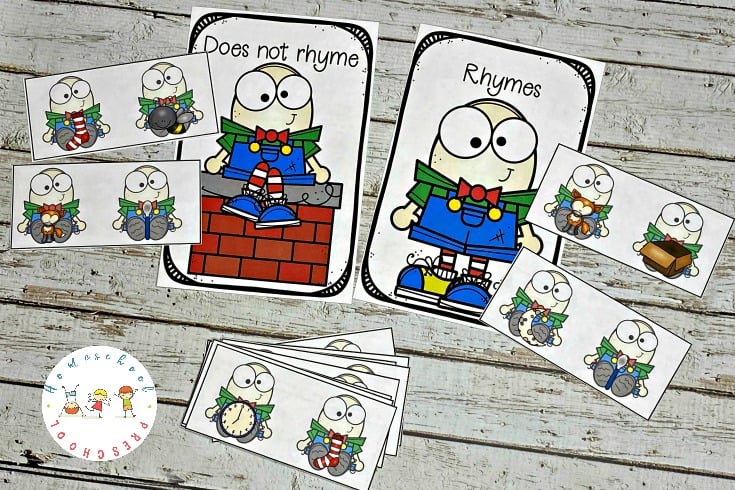 To play the rhyming words matching game, print and laminate the pages. Cut apart the cards. The goal of this activity is to determine whether or not each set of images rhymes.