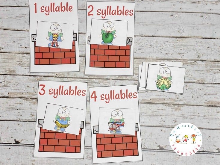 This, too, can be made into a self-checking activity by putting matching stickers on the back of each set of cards according to the number of syllables.
