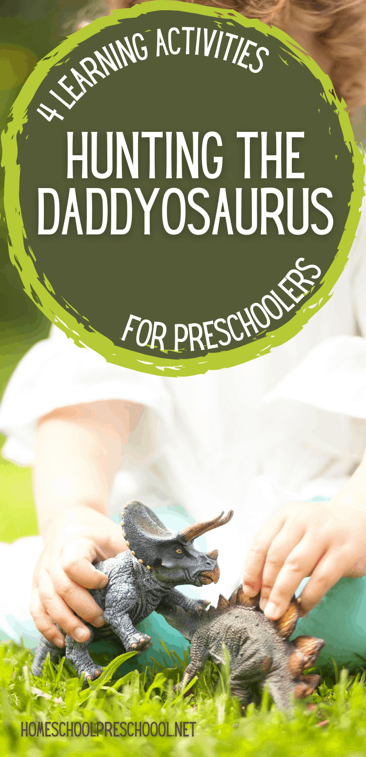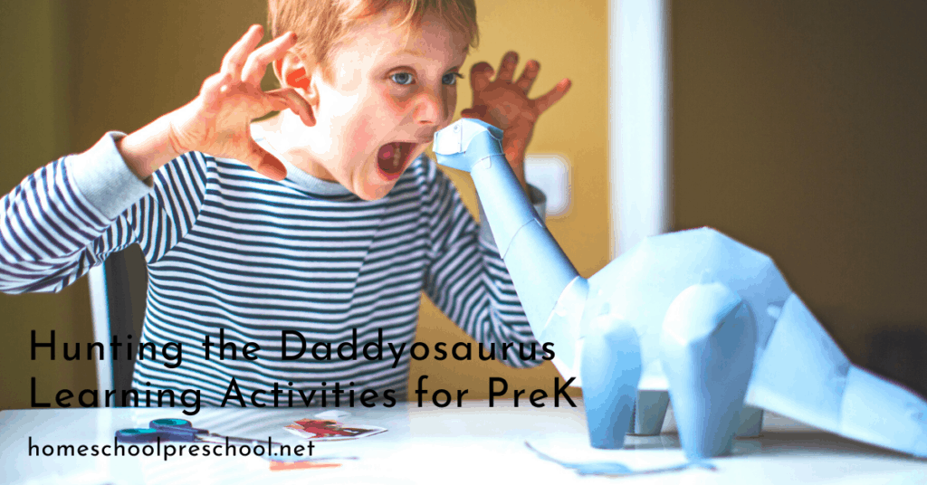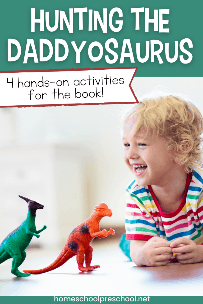 Discover four hands-on activities your preschoolers will love! Each one is inspired by the book Hunting the Daddyosaurus.