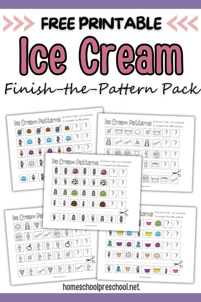 Kids will love the ice cream theme, and you’ll love how these worksheets help build essential skills. Whether you’re a teacher or a parent, these resources are perfect for teaching patterns to children aged 3-5 both at home and in the classroom.