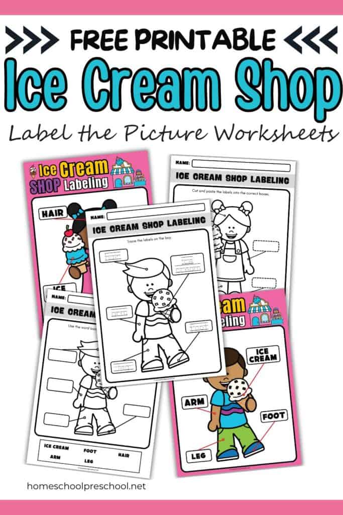 Ready to scoop up some learning fun? Our labeling worksheets feature adorable illustrations of everyone’s favorite frozen treat and all the yummy toppings. Print them out, watch your child build vocabulary, and strengthen hand-eye coordination as they identify and label each delicious detail!