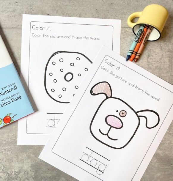 Using the If You Give a Dog a Donut read-aloud video and the accompanying printables, parents and teachers can create an engaging experience that will help preschoolers develop reading readiness skills and have lots of fun in the process!