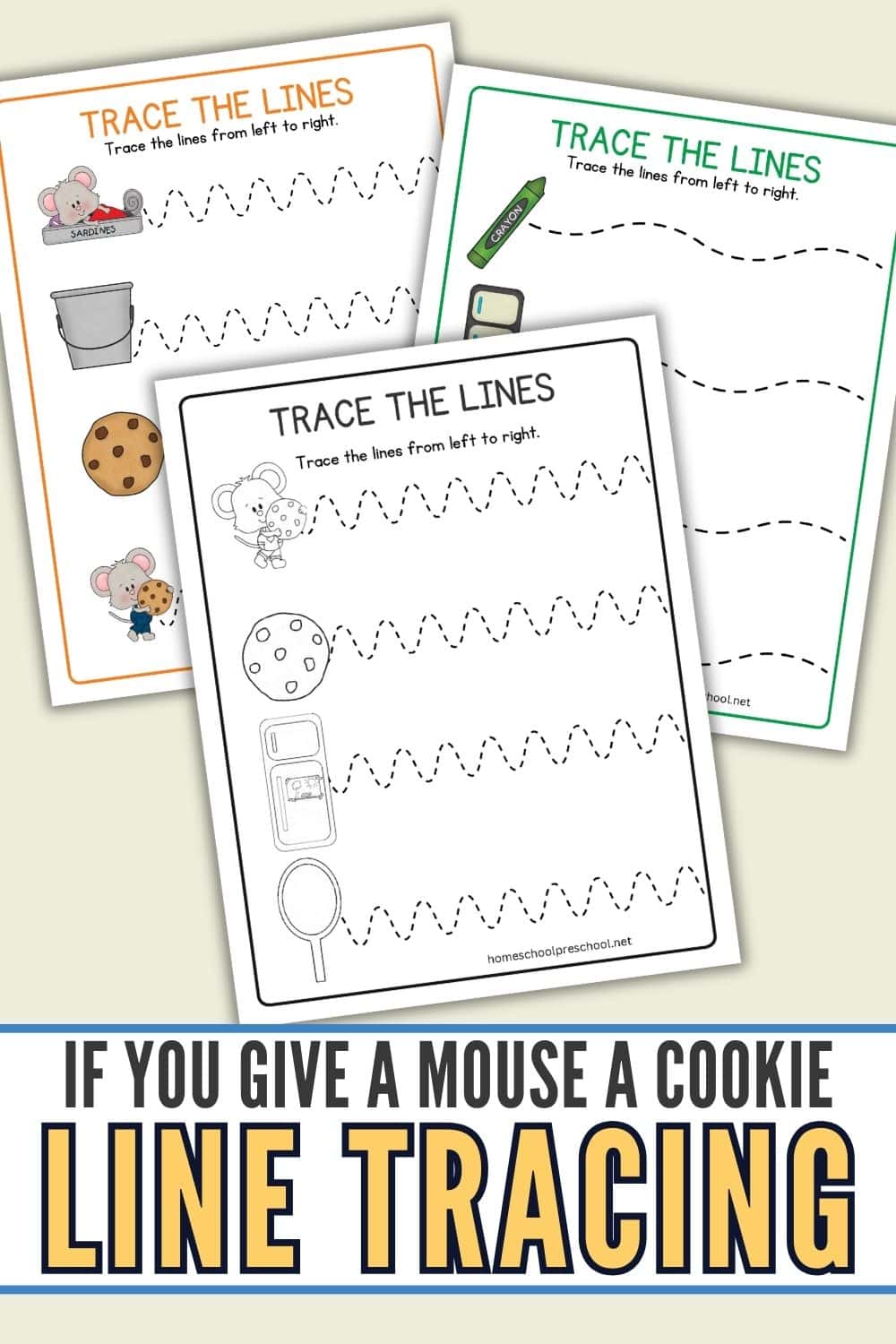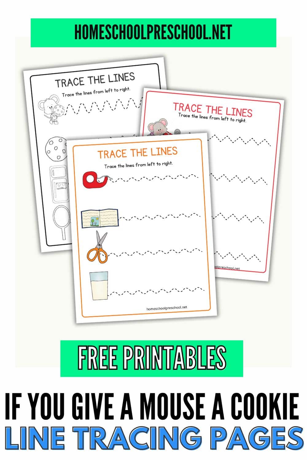 If your kids love Laura Numeroff’s books, your kids will adore these fun If You Give a Mouse a Cookie line tracing worksheets! These line tracing worksheets are a playful way to help little ones develop the hand-eye coordination and control they need for writing. They’ll get to practice following lines and shapes, inspired by all the silly things that happen in the story.