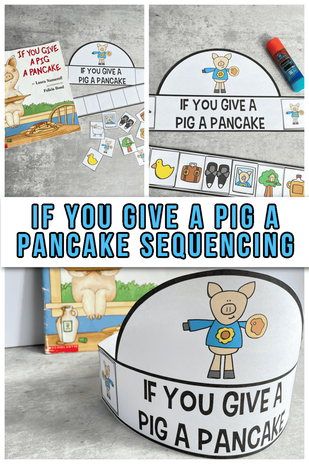 It includes a sequencing hat template that is easy to cut out and assemble, as well as colorful illustrations featuring images from the book If You Give a Pig a Pancake.