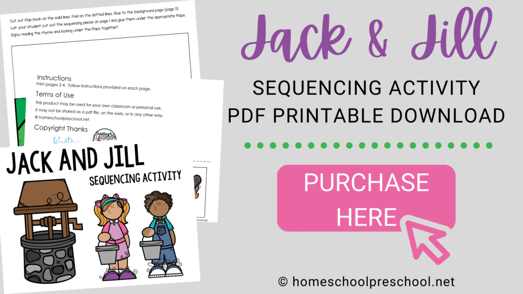 Grab your copy of these Jack and Jill sequencing pictures today! Add them to your upcoming nursery rhyme or sequencing lessons.
