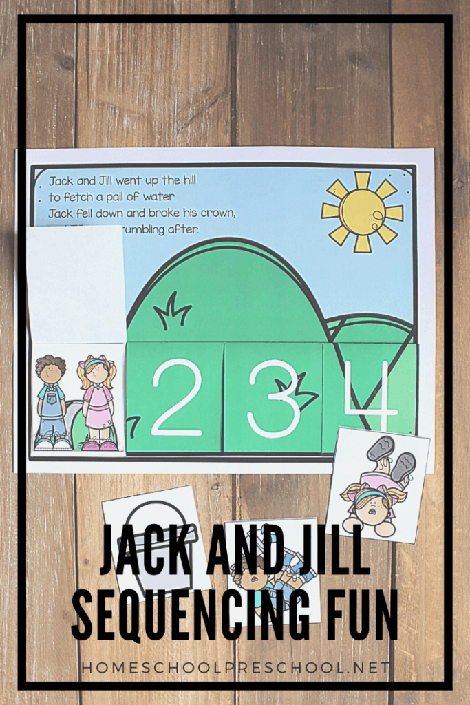 One easy place to start story sequencing is with nursery rhymes. And, Jack and Jill is a fun one to use throughout the year.