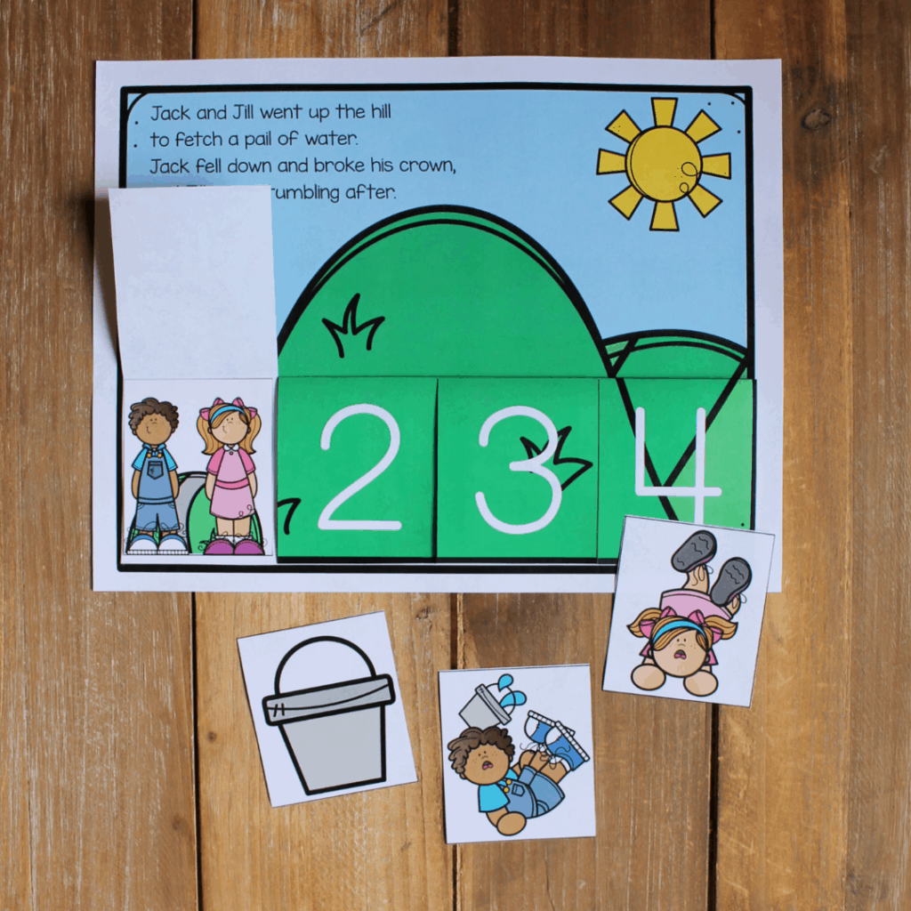 Your preschoolers will love reciting the Jack and Jill nursery rhyme over and over again as they lift the flaps on their sequencing book.