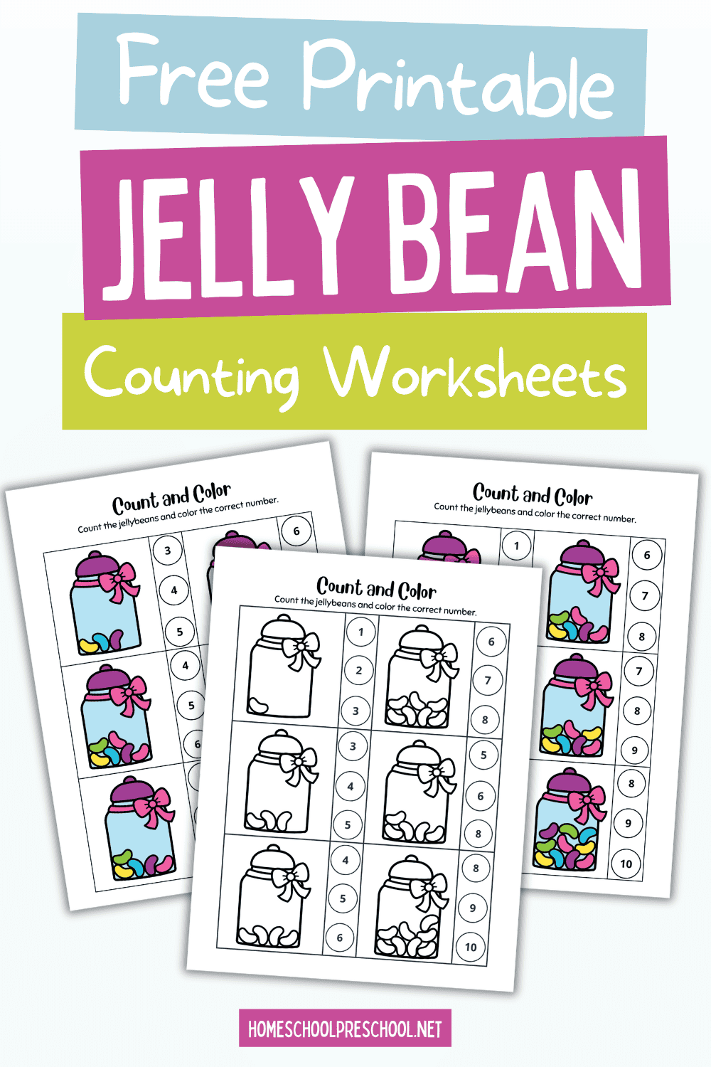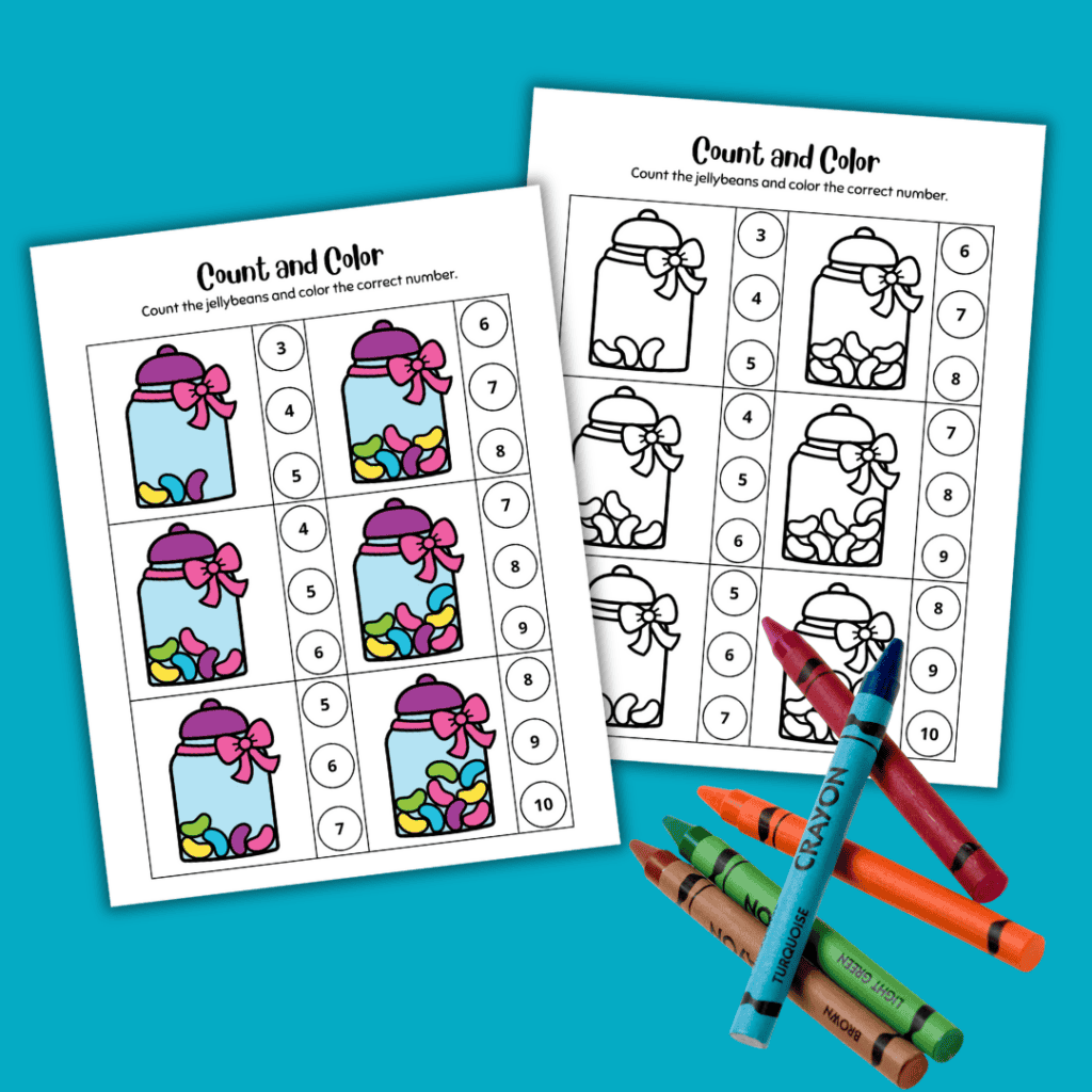 These count and color worksheets are not only fun, but they also align with early childhood education standards. So while your child is having a blast counting jelly beans, they’re also learning important skills that will benefit them in the future.