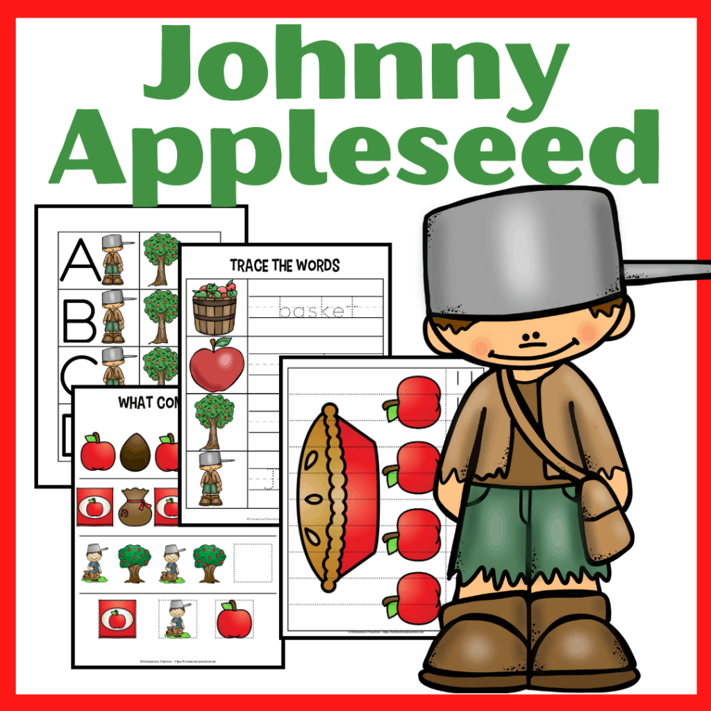 Whether you’re celebrating Johnny Appleseed Day or supplementing your apples preschool theme, don’t miss this free Johnny Appleseed preschool activity pack!