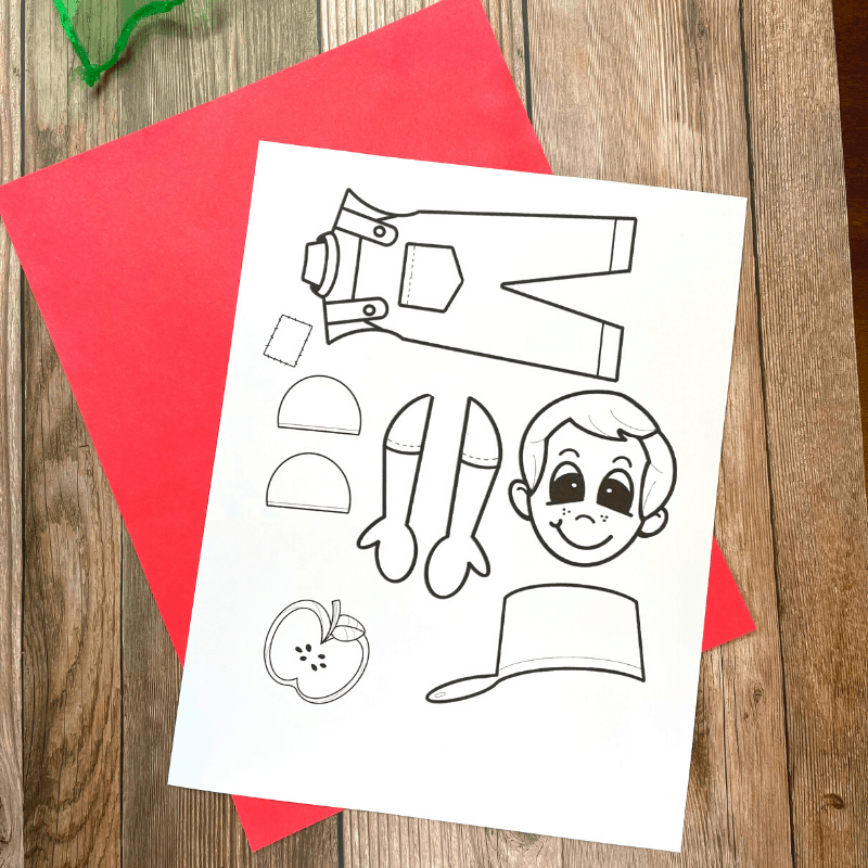 Now, cut out all of the pieces to build your Johnny Appleseed paper craft.