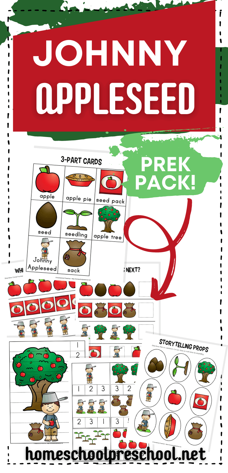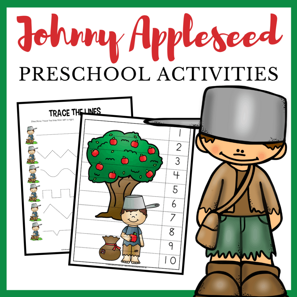 Whether you’re celebrating Johnny Appleseed Day or supplementing your apples preschool theme, don’t miss this free Johnny Appleseed preschool activity pack!