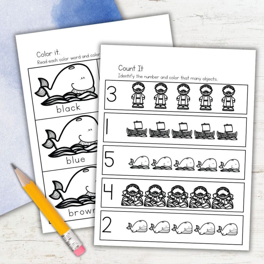 Another key skill developed through the Jonah and the Whale activity set is math readiness. The counting sheets and number matching activities focus on basic number recognition, counting objects, and early math concepts. Children will practice identifying numbers, matching quantities to numerals, and simple counting sequences.