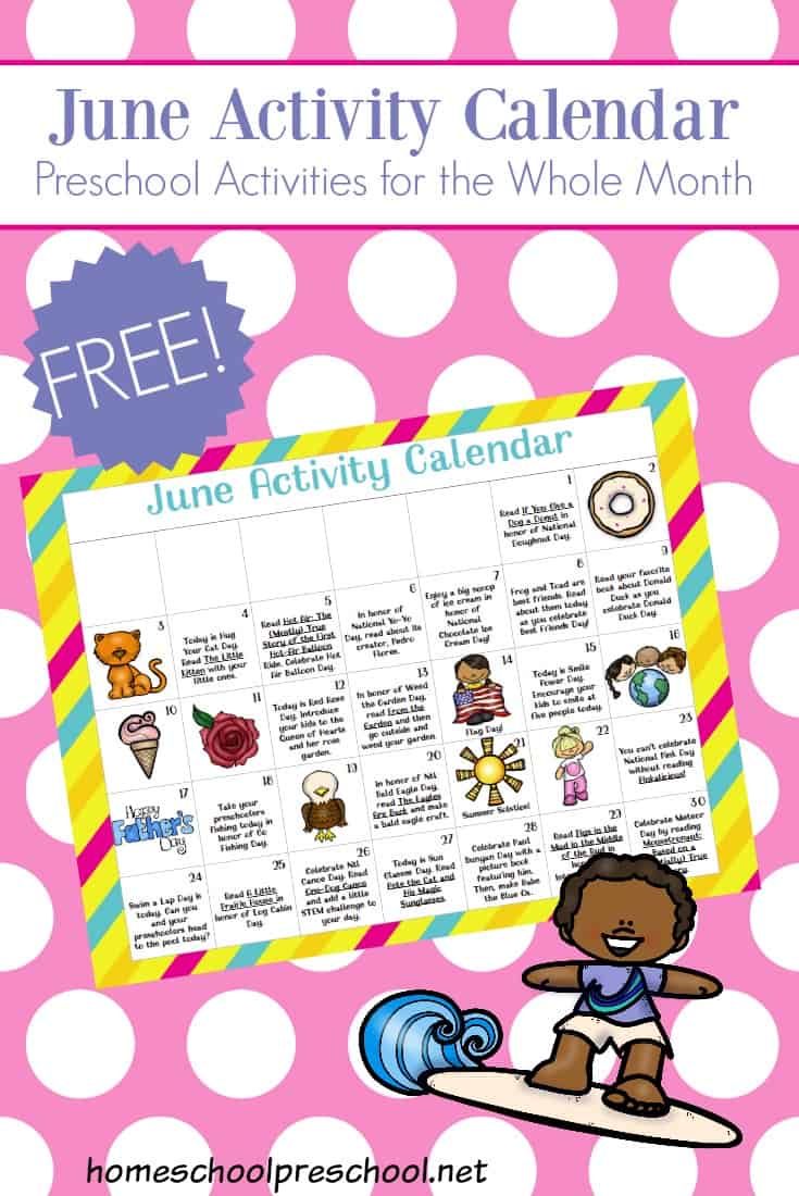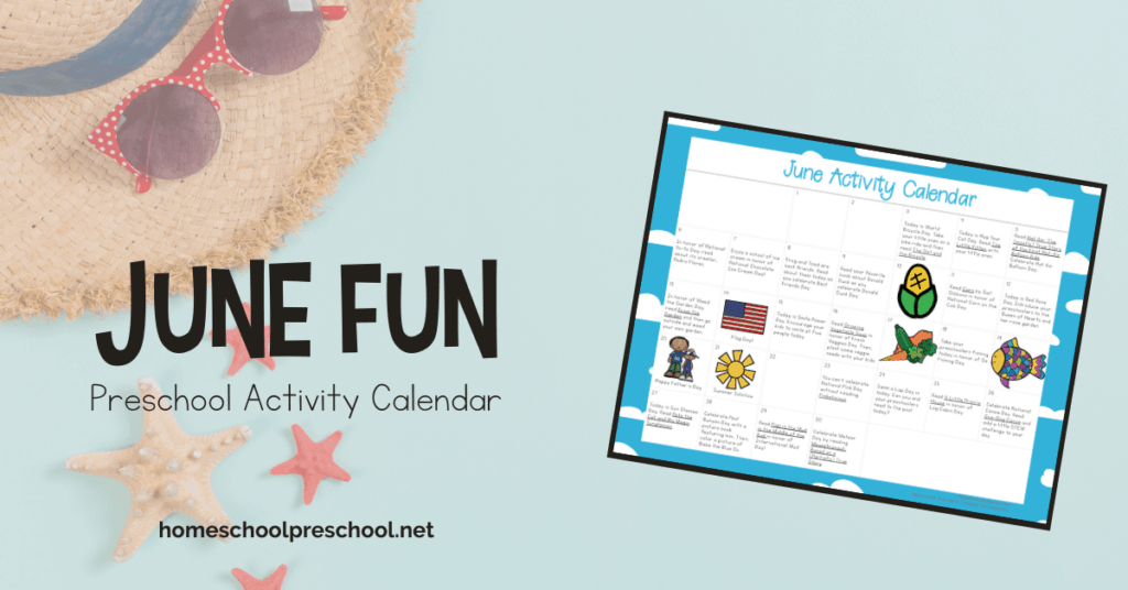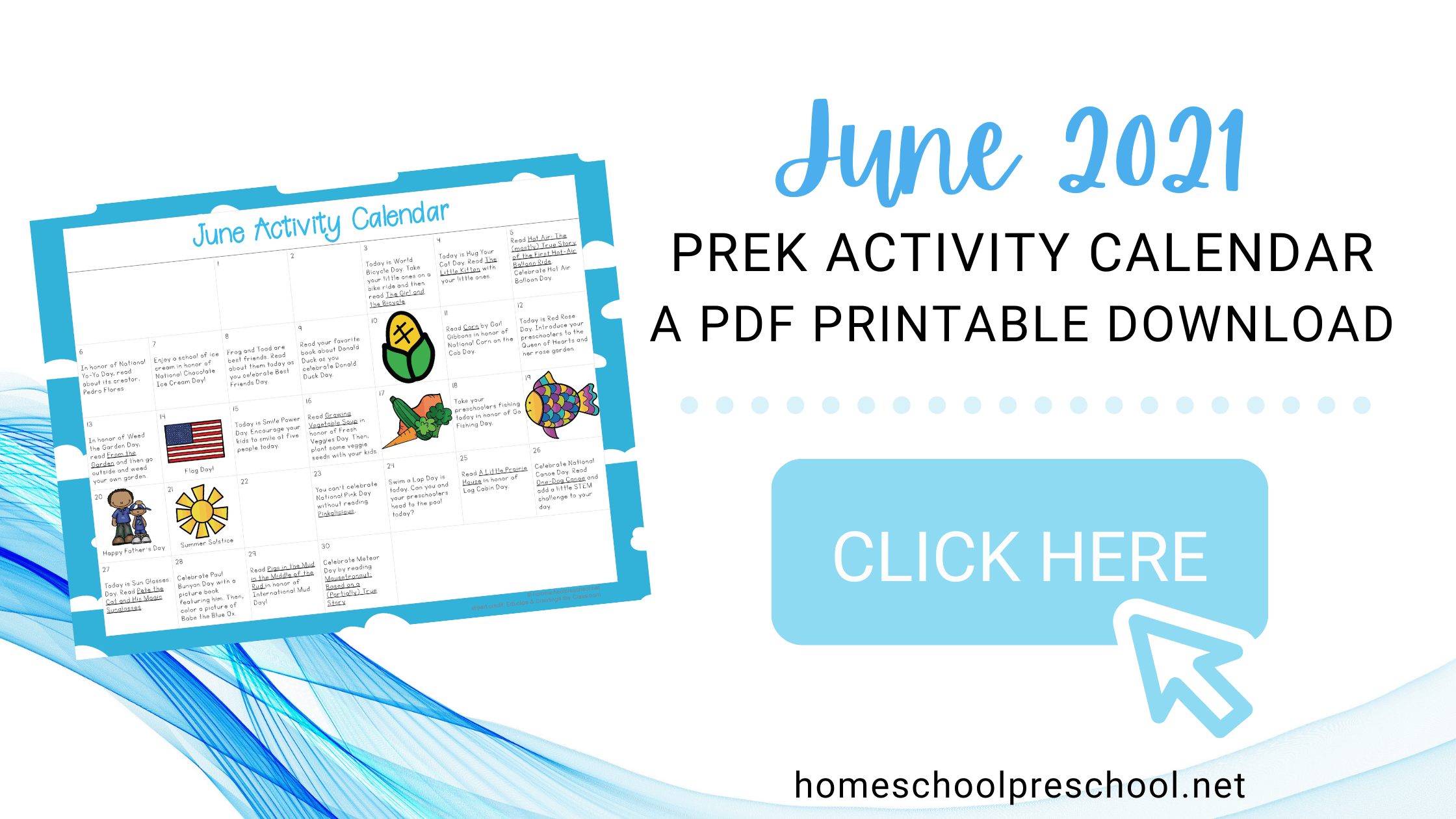Be sure to download this month’s preschool activity calendar! You and your preschoolers can celebrate all of June’s special days with hands-on activities, books, and preschool printables.