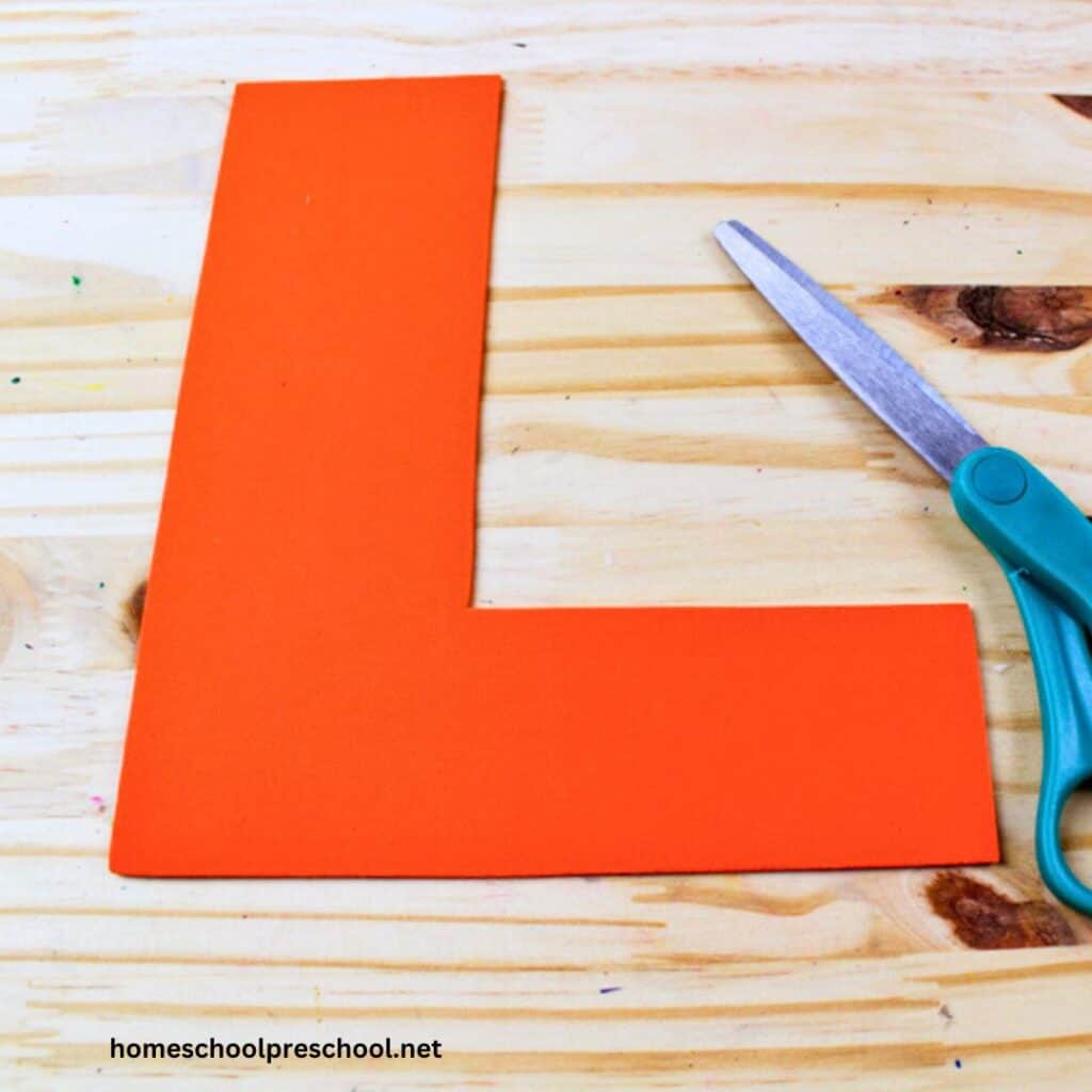 First, we’ll want to make our letter L. Download and print the letter L template (below) on cardstock. Cut it out.