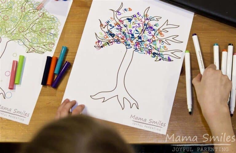 This open-ended activity is perfect for all seasons. This fall, let your preschoolers decorate this tree coloring page with autumn stamps and colors. Mama Smiles