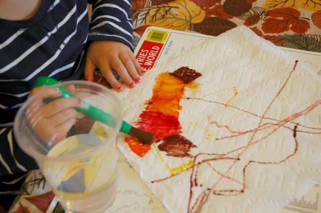 This q-tip painted fall tree craft is fairly mess-free, and it’s a great way to help little ones work on fine motor skills and hand-eye coordination. There’s Just One Mommy