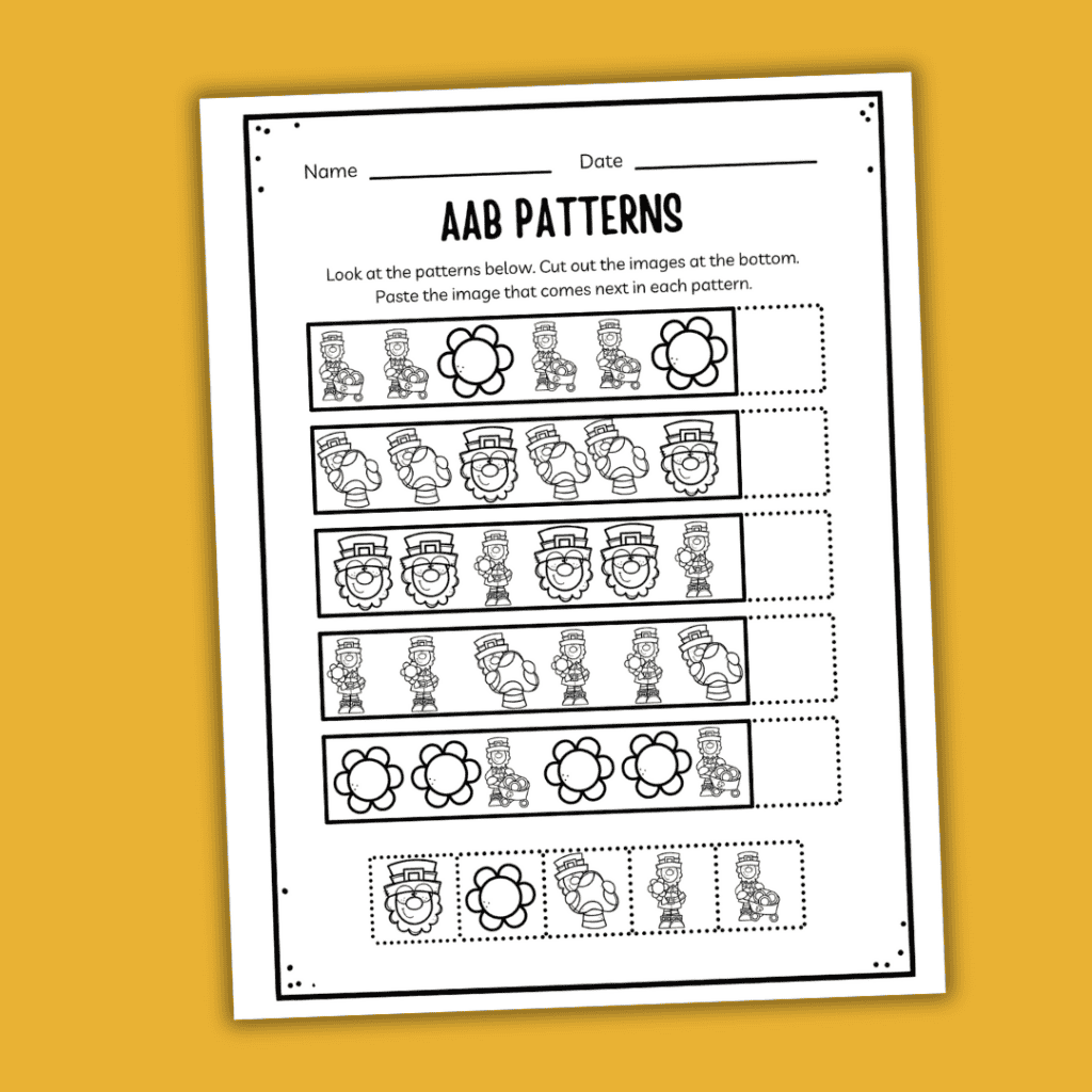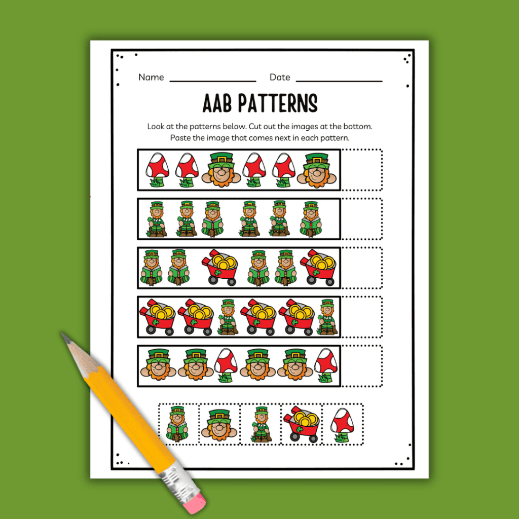 So, get ready for some pot o’ gold-worthy learning fun this St. Patrick’s Day with our leprechaun AAB pattern worksheets!