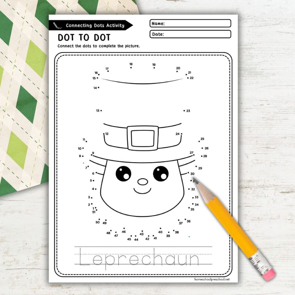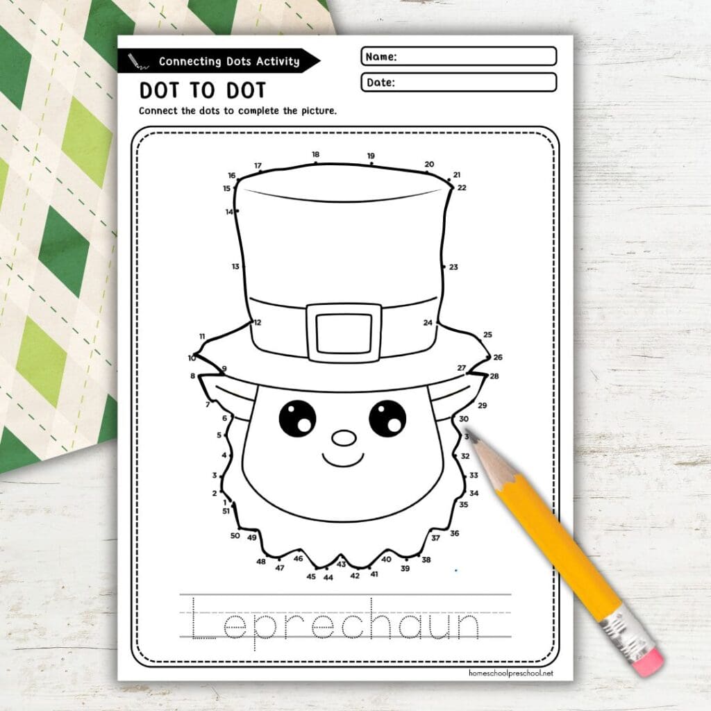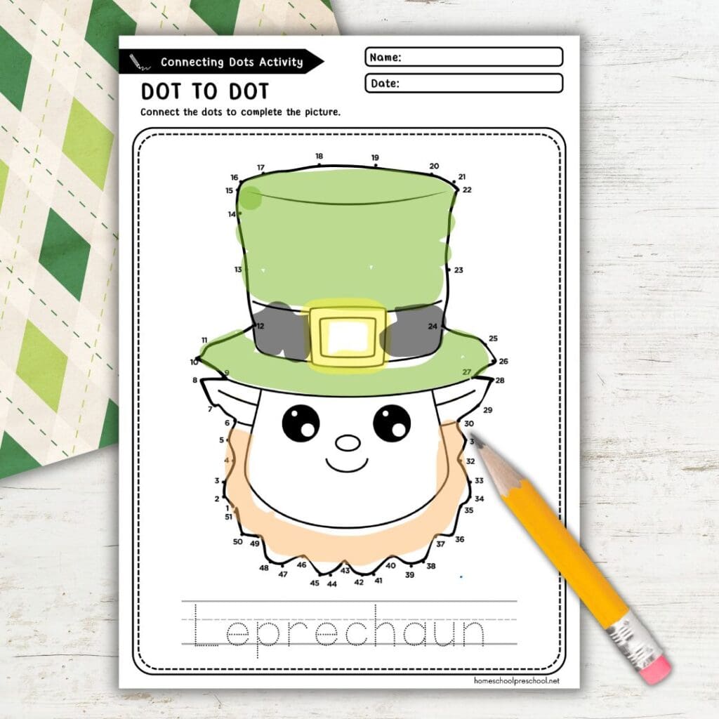 Ready to make St. Patrick’s Day extra special? Download our free leprechaun dot to dot printable and watch your little ones light up with excitement as they complete their creations. It’s an activity they’ll have so much fun with—and you’ll love seeing their excitement!