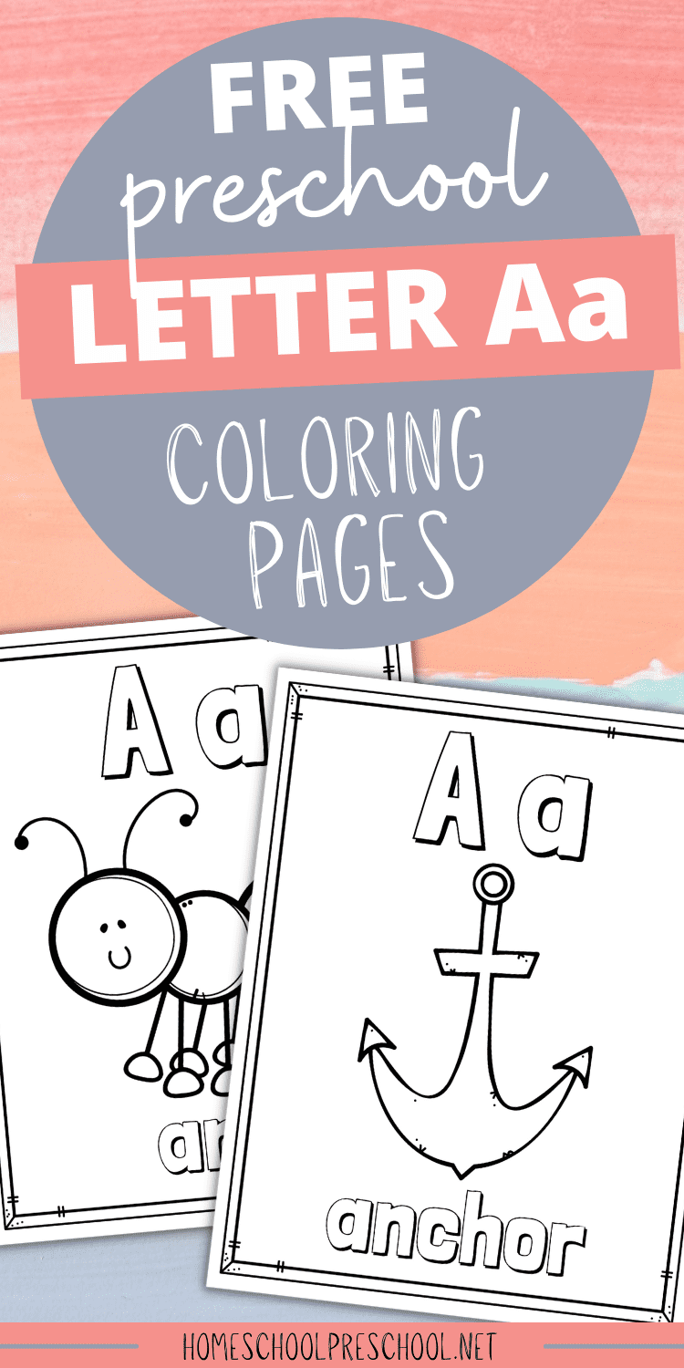 Not only do these preschool coloring pages make a great little Letter Aa coloring book, but you can print them one page at a time to add to your themes that begin with Aa – airplanes, apples, etc.
