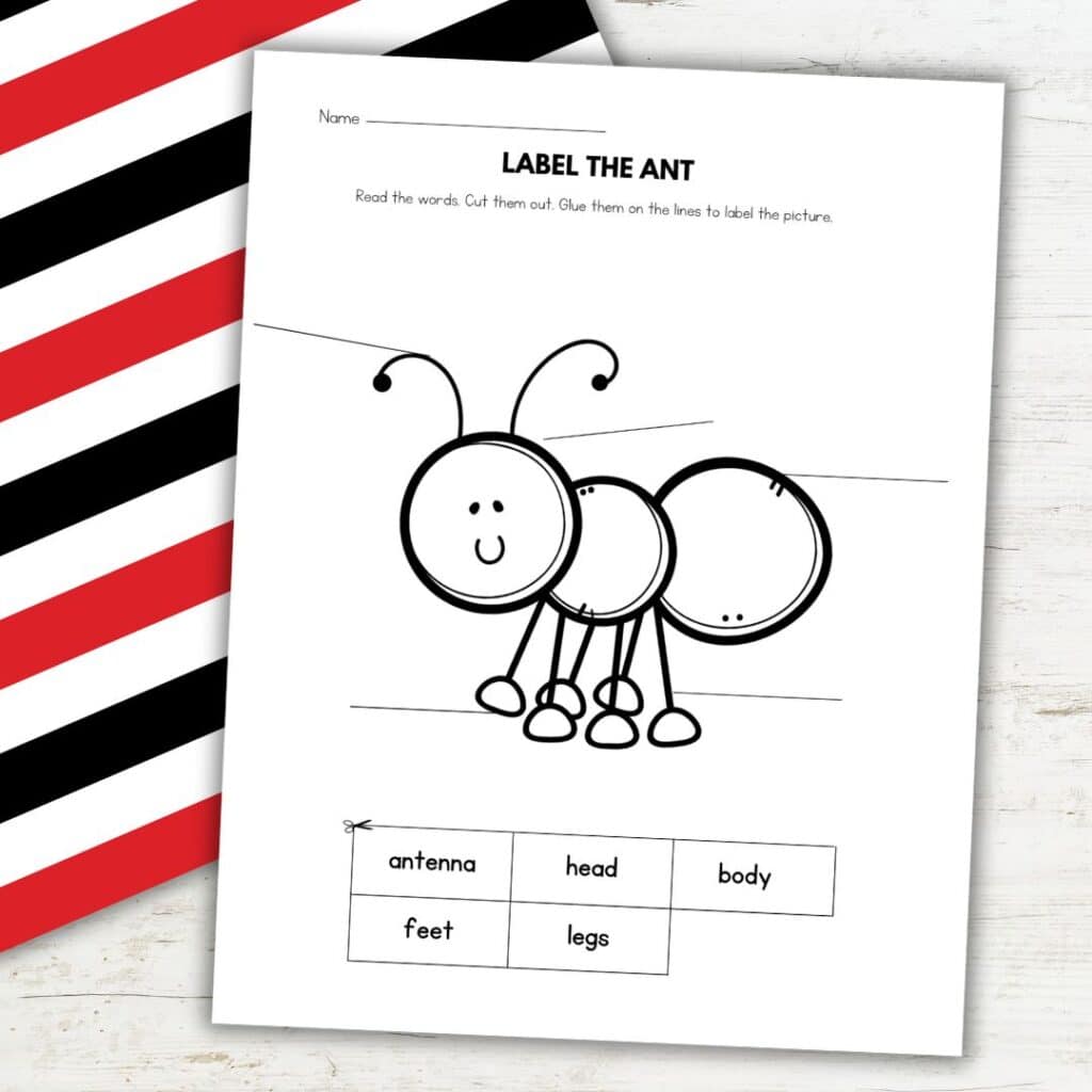 - Label the Ant – Cut and paste labels to name parts of an ant (bonus science integration!)