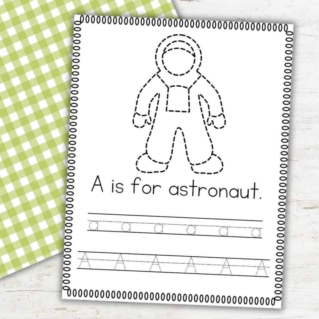 Each page features a large picture of an object that starts with the letter A, like apple or astronaut. Children trace the image, read a simple “A is for…” sentence, and follow guided lines to practice writing. These steps help build letter recognition, phonics awareness, and early handwriting skills in a clear, engaging way.n apple or an