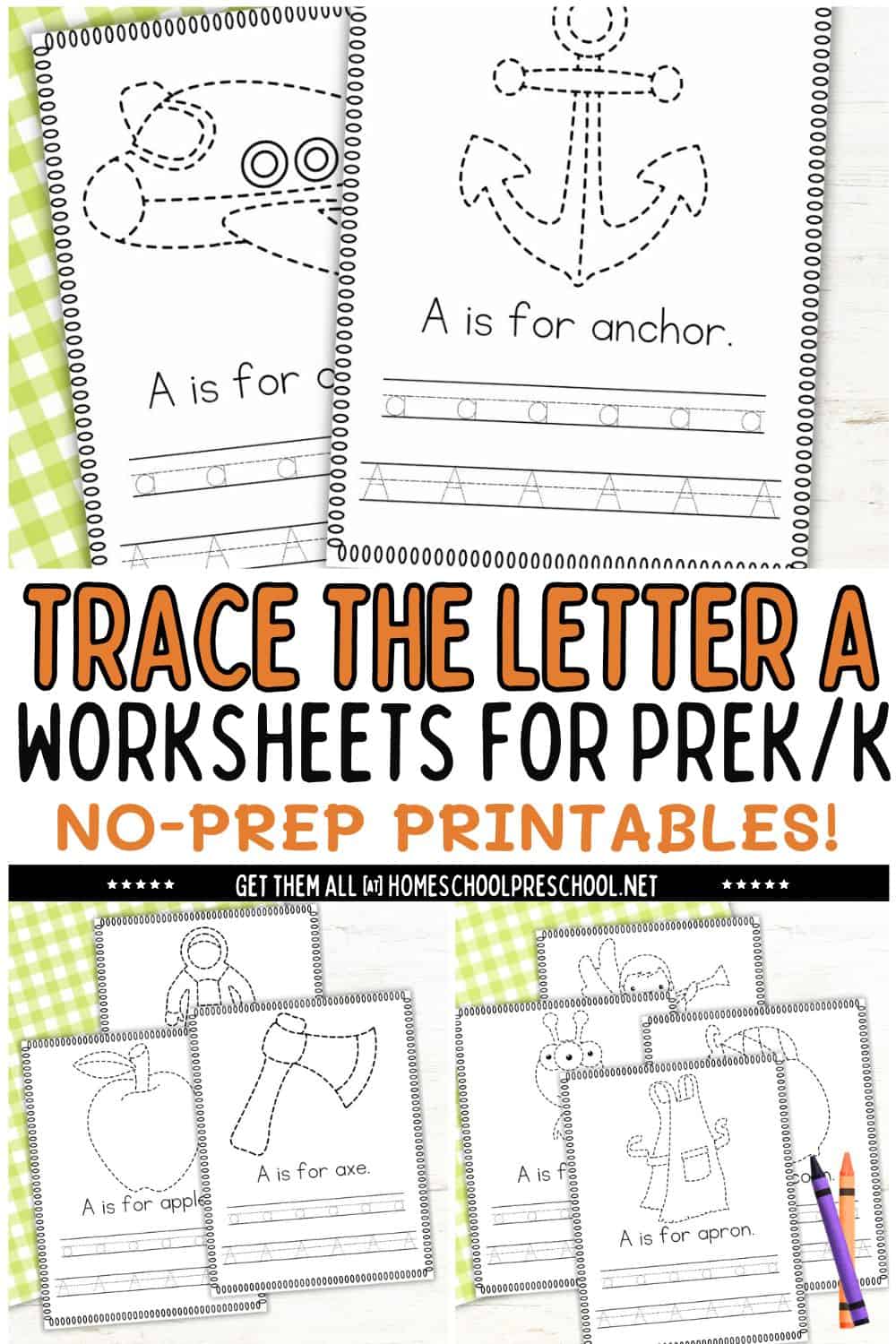 These letter A tracing printables are great for hands-on letter practice at home or in the classroom. Just print the pages and let your child trace uppercase and lowercase A using a pencil, crayon, or marker. As they trace, encourage them to say the letter name and picture word to build phonics and vocabulary skills.