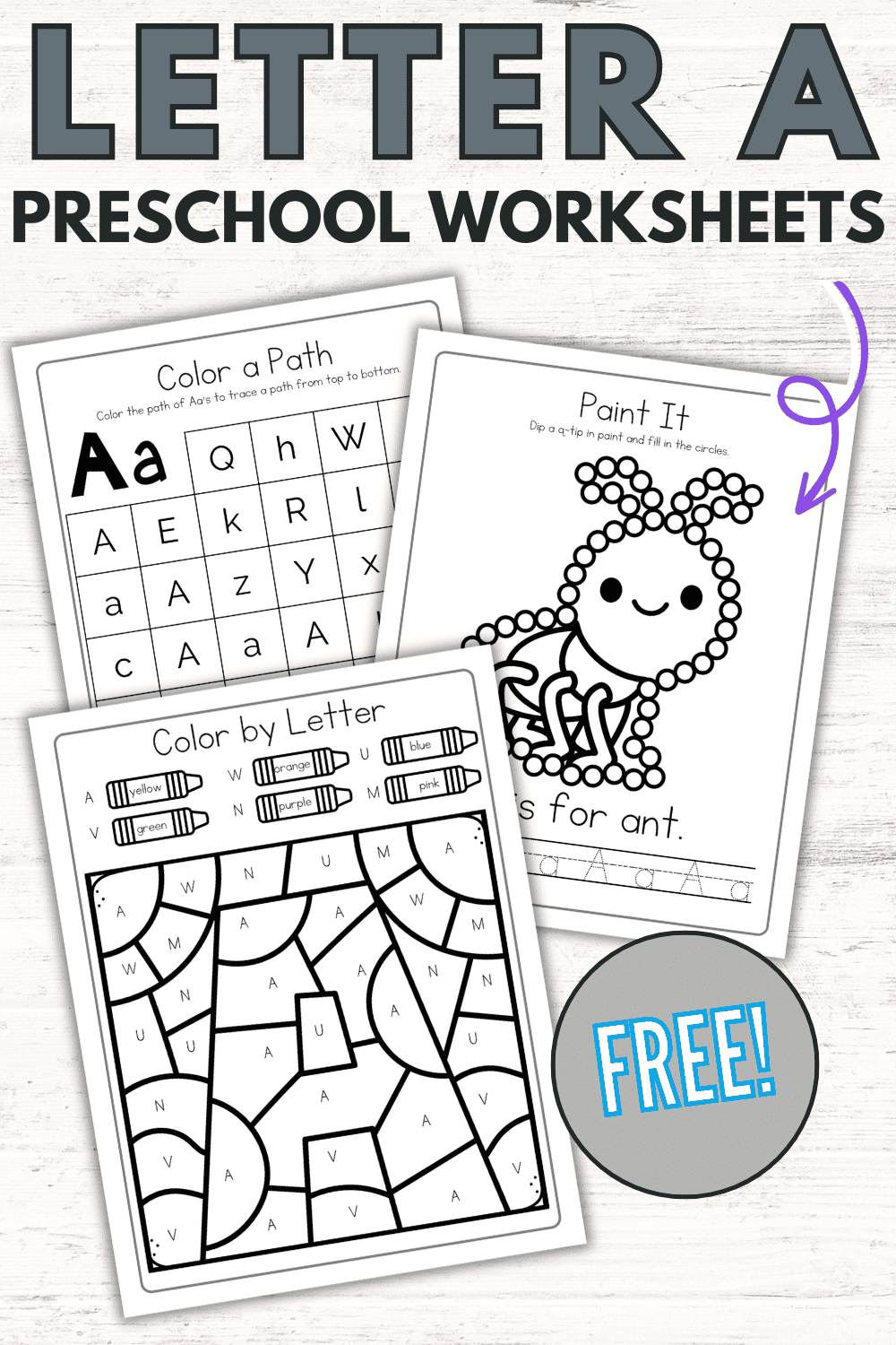 These free printable alphabet worksheets provide a fun and effective way for preschoolers to learn the letter A and its associated sound. Not only that, but they also help children identify objects that start with the letter A.