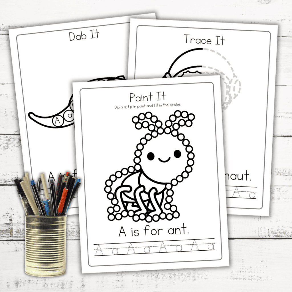 From tracing letters to connecting dots and coloring in pictures that begin with the letter A, there’s something for every little learner.