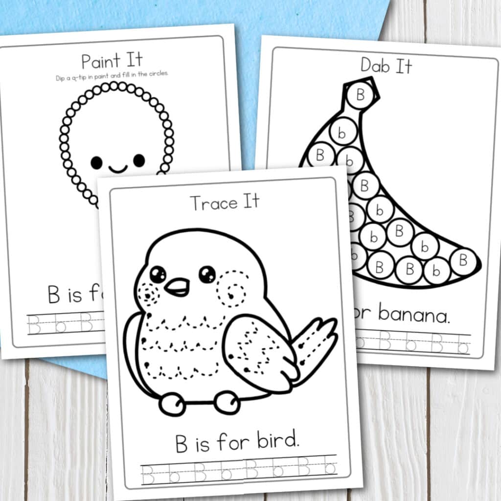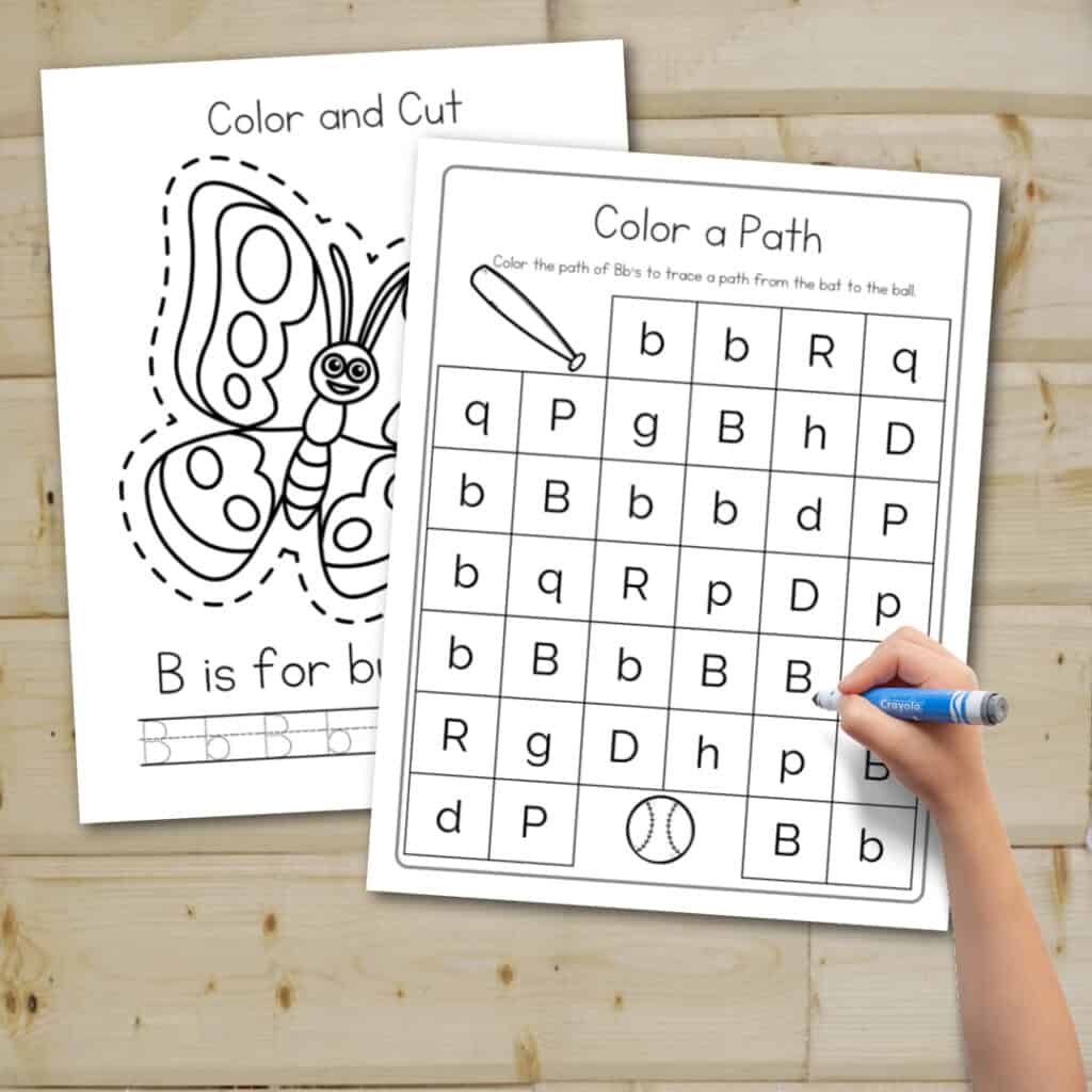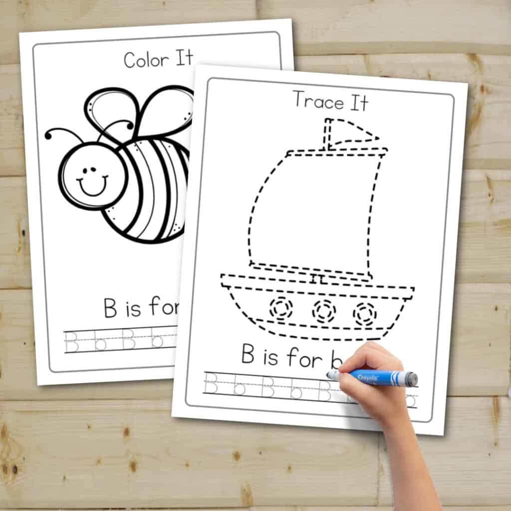 For example, some common activities include tracing letters, connecting dots, coloring in pictures that begin with the letter B, and more.