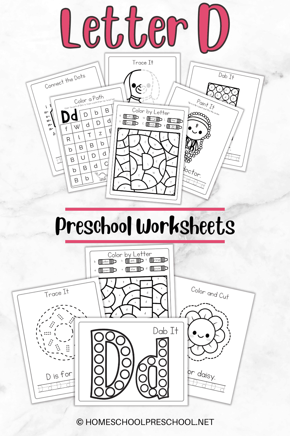 Our preschool worksheets come with a variety of activities to help your child learn about the Letter D.