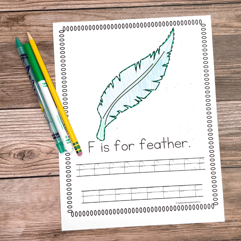 Then, have them trace the letters F and f at the bottom of the page. If desired, they can then color the picture.