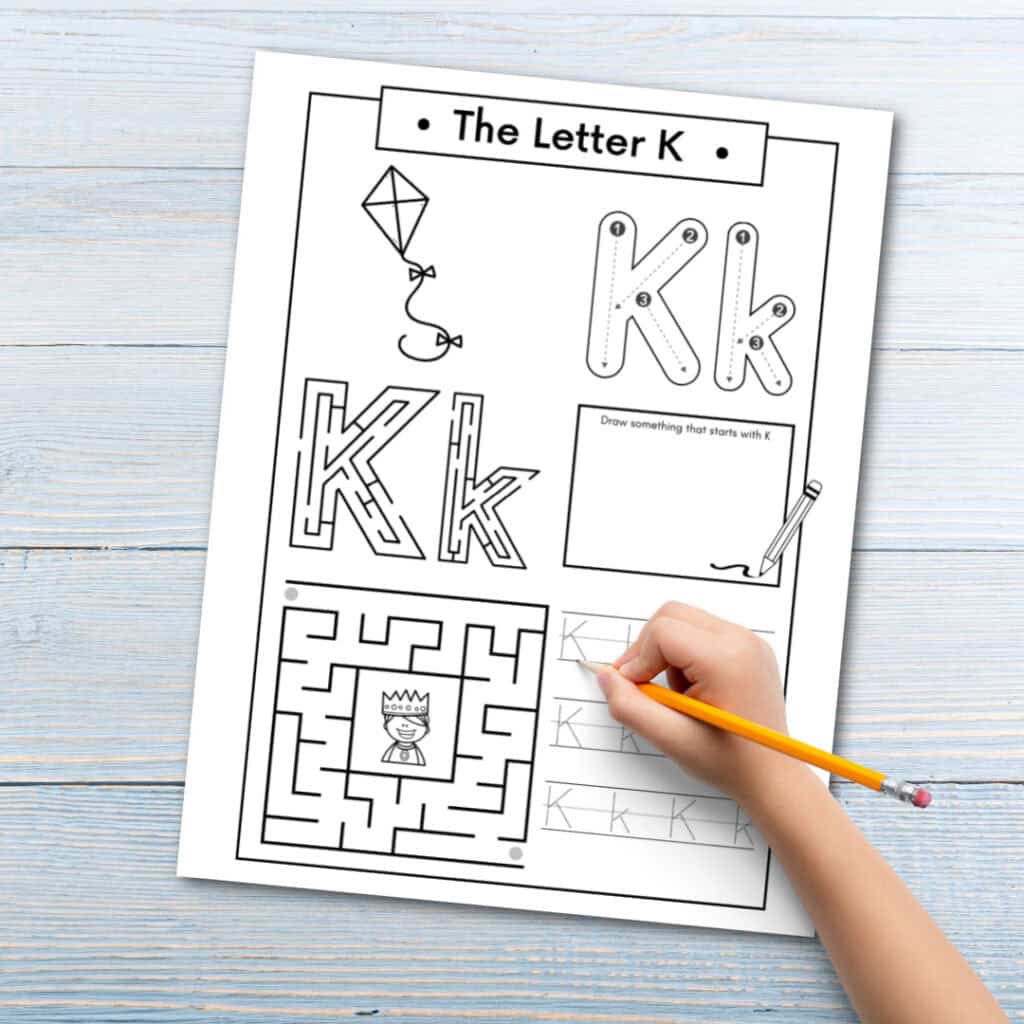 Today we’re focusing on the letter Kk. These Letter K preschool worksheets are perfect for preschoolers and kindergarteners who are just starting to learn their alphabet.